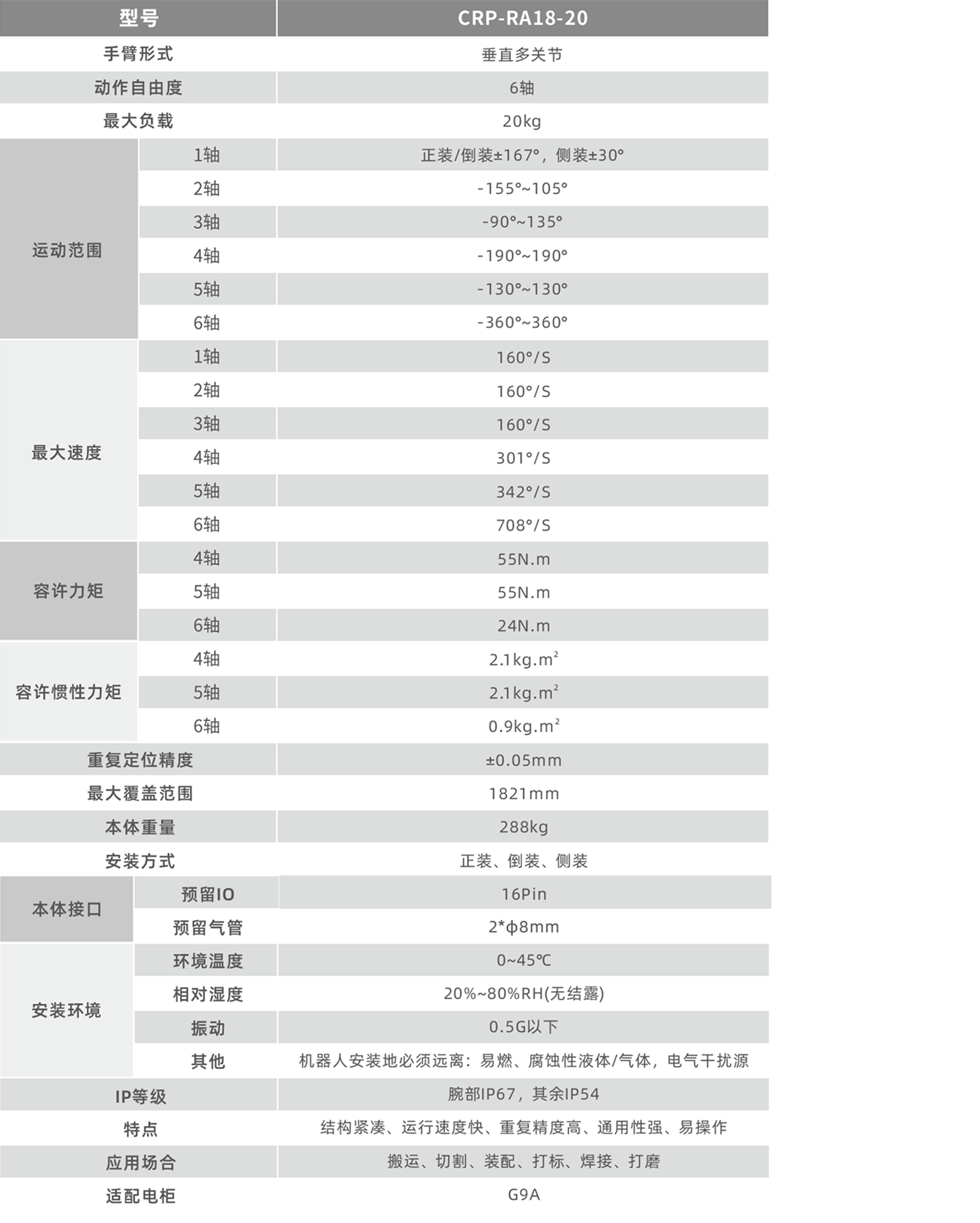 • 机器人整体结构高度紧凑、轻量化,更加轻巧适用,尤其腕部更加小巧,满足更多的场景。